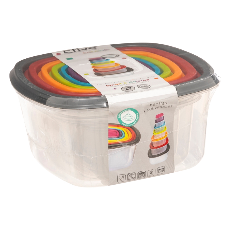 5five Lot de 7 boîtes de conservation carrées en PP - Couleurs variées