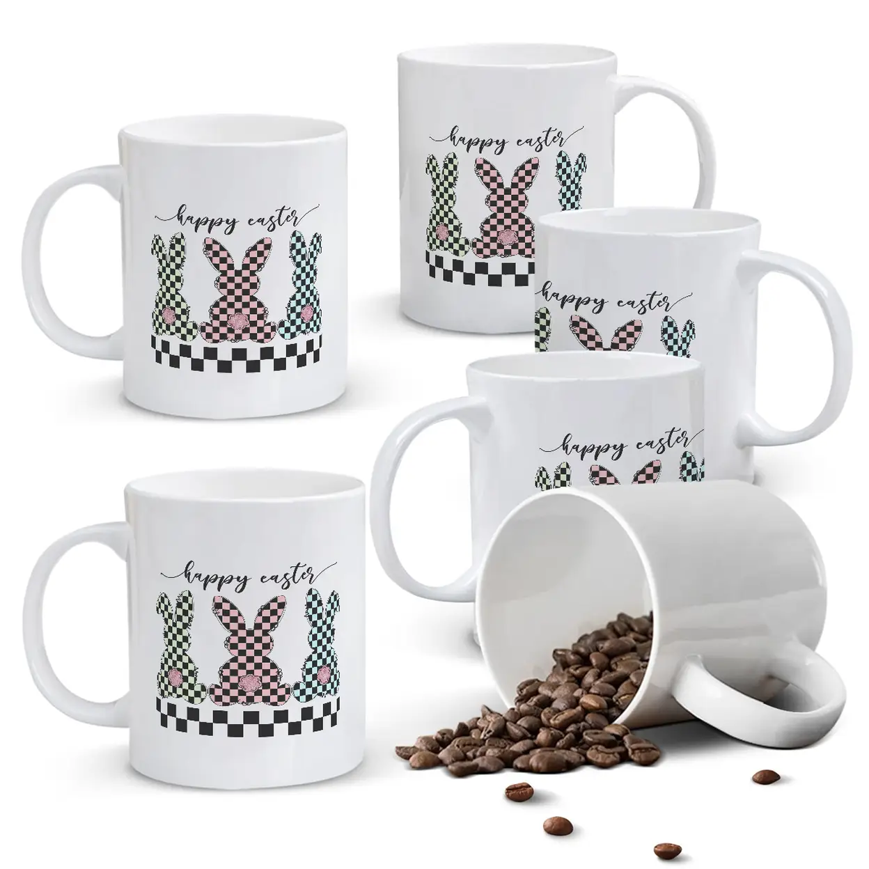 Alphynix 1 Mug Joyeuses Pâques, tasse à café céramique 33cl avec lapins à motif carreaux et petits derrières roses, cadeau moderne funky pour ados, adultes,Le cadeau de la saint-valentin, cadeau d’anniversaire
