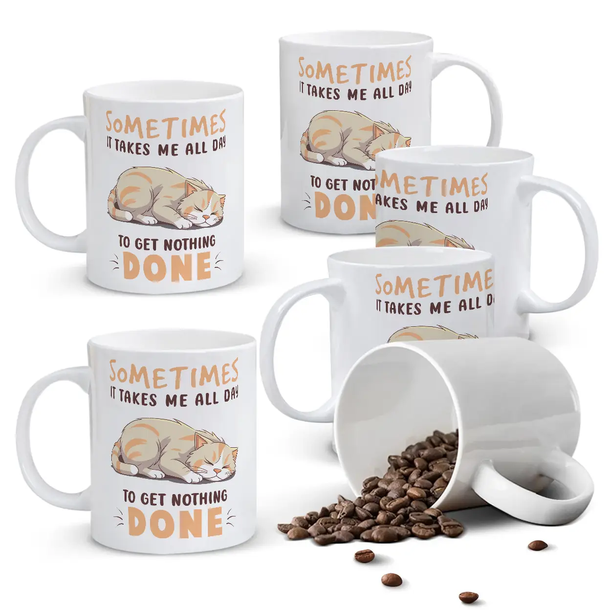 Alphynix 1 Mug blanc 33cl avec "Parfois il me faut toute la journée pour ne rien faire" Spruch & Chat endormi, cadeau de Noël ou Thanksgiving détendu,Le cadeau de la saint-valentin, cadeau d’anniversaire image 1