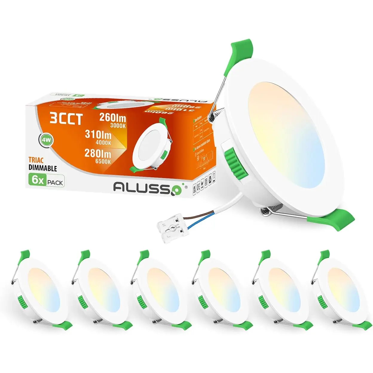 Alusso Lot de 6 luminaires encastrés LED 230 V, 68 mm, 4 W, 310 LM