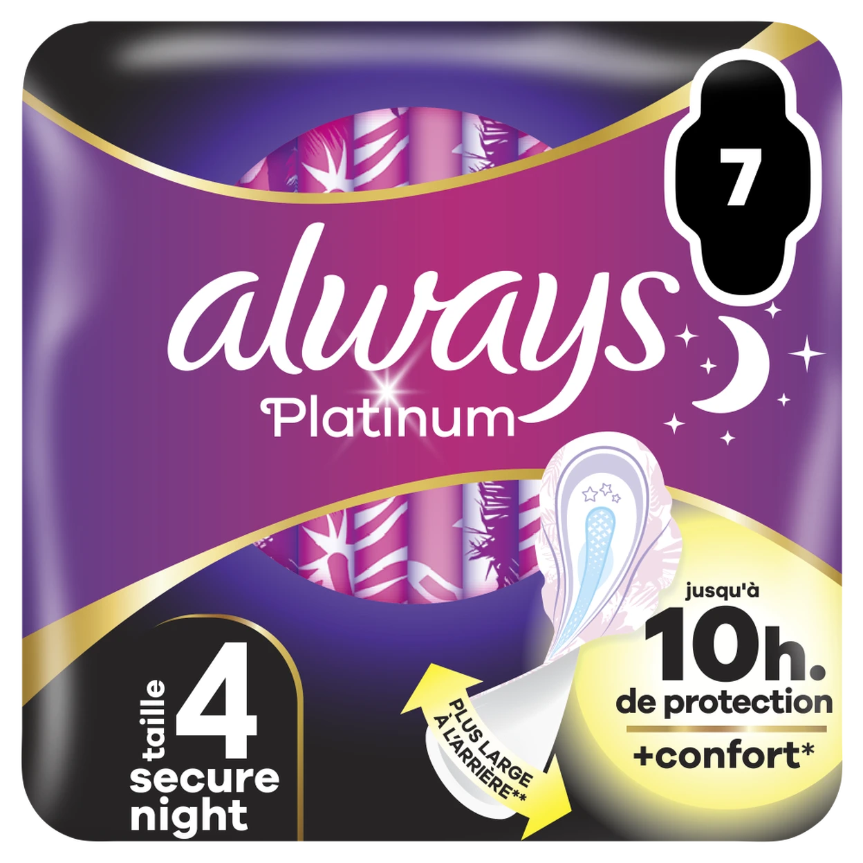 ALWAYS Platinum - Serviettes Hygiéniques Secure Night Taille 4 - Lot de 7 serviettes