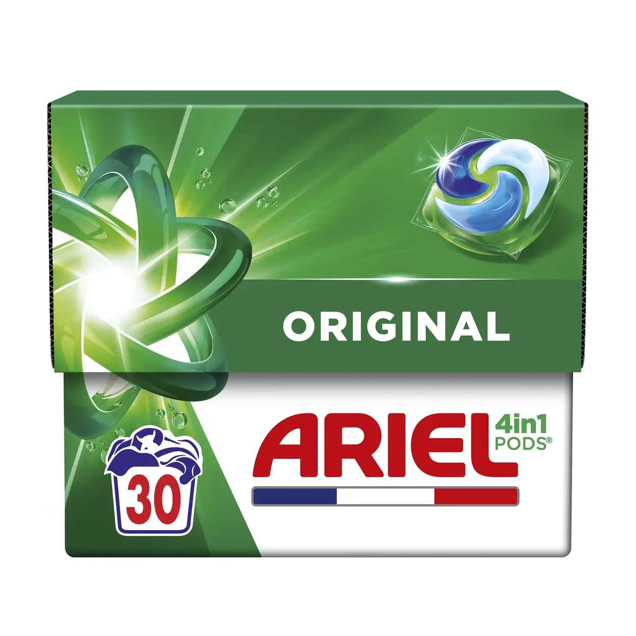 Les capsules de lavage Ariel PODS® 4en1 Original offrent une élimination impeccable des tâches en 1 lavage. Elles sont également fabriquées en France. Les Ariel PODS® 4en1 ont été conçues pour fonctionner efficacement même dans des cycles froids et courts, se dissolvant rapidement même dans l'eau froide, offrant des résultats impeccables et un parfum frais de propre qui dure. Les cycles froids aident également à préserver vos tissus plus longtemps (vs. cycles chauds). Pour des résultats optimaux, placez la capsule à l'arrière du tambour vide et ajoutez vos vêtements dessus. Pour des machines de plus de 5 kg et pour les taches ou odeurs tenaces, utilisez 2 PODS®. Gardez toujours les capsules de lavage Ariel PODS® 4en1 hors de portée des enfants. Visitez keepcapsfromkids.eu pour plus d'informations