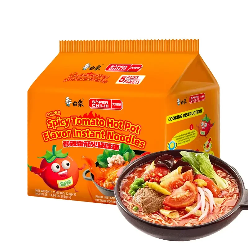 Baixiang Scharf-saure Nudeln mit Tomaten-Eintopfgeschmack, 5er-Pack, 125g*5