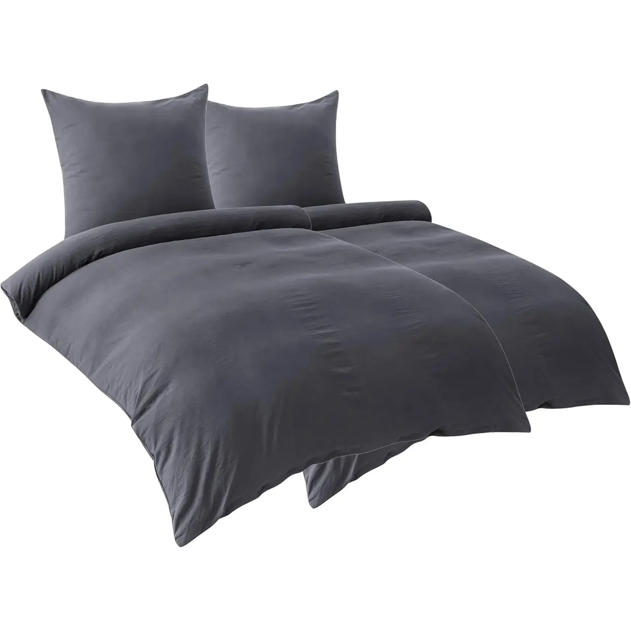 Cette parure de lit 4 pièces comprend deux housses de couette (135 x 200 cm chacune) et deux taies d'oreiller (80 x 80 cm chacune) de couleur gris charbon. Elle présente une conception pratique avec huit attaches d'angle à l'intérieur de chaque housse de couette pour assurer un ajustement sécurisé et empêcher le rembourrage de glisser. La fermeture à glissière permet un usage plus rapide et plus facile que les fermetures à boutons classiques. Le design uni en couleur unie offre une polyvalence de style qui s'intègre parfaitement dans n'importe quelle décoration de chambre, ce qui en fait un choix idéal pour créer un environnement de chambre confortable avec plusieurs options de literie.