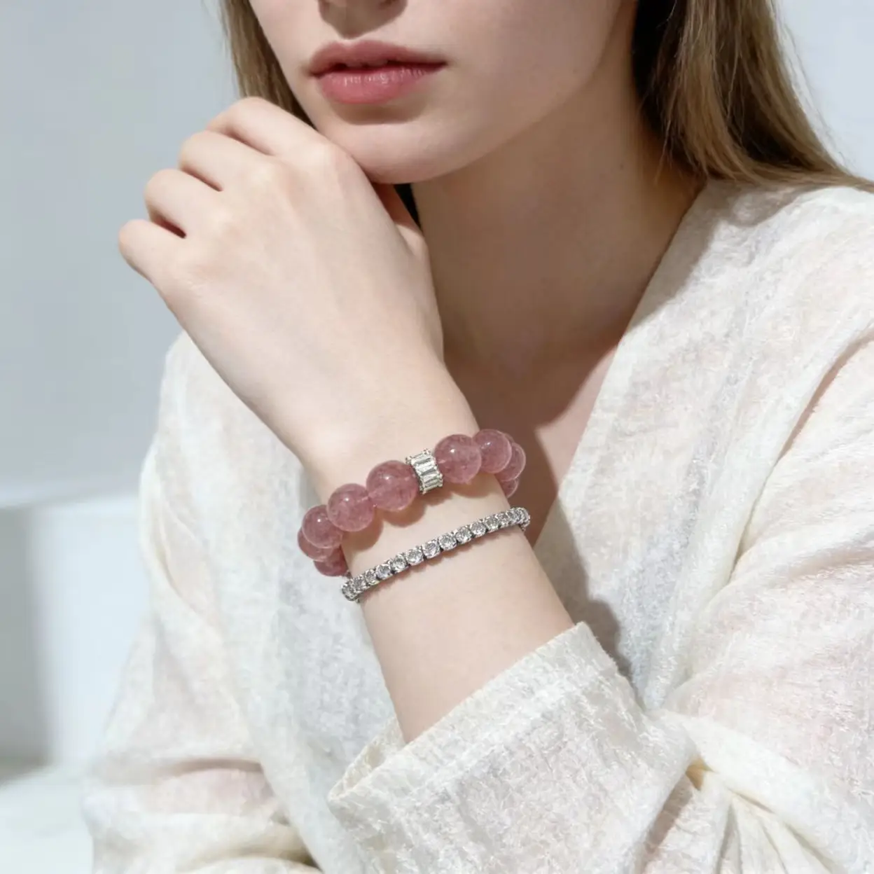Bracelet en cristal VoxorAIL8 [Fleur de pêcher], bracelet en cristal naturel, bracelet original fait main.
