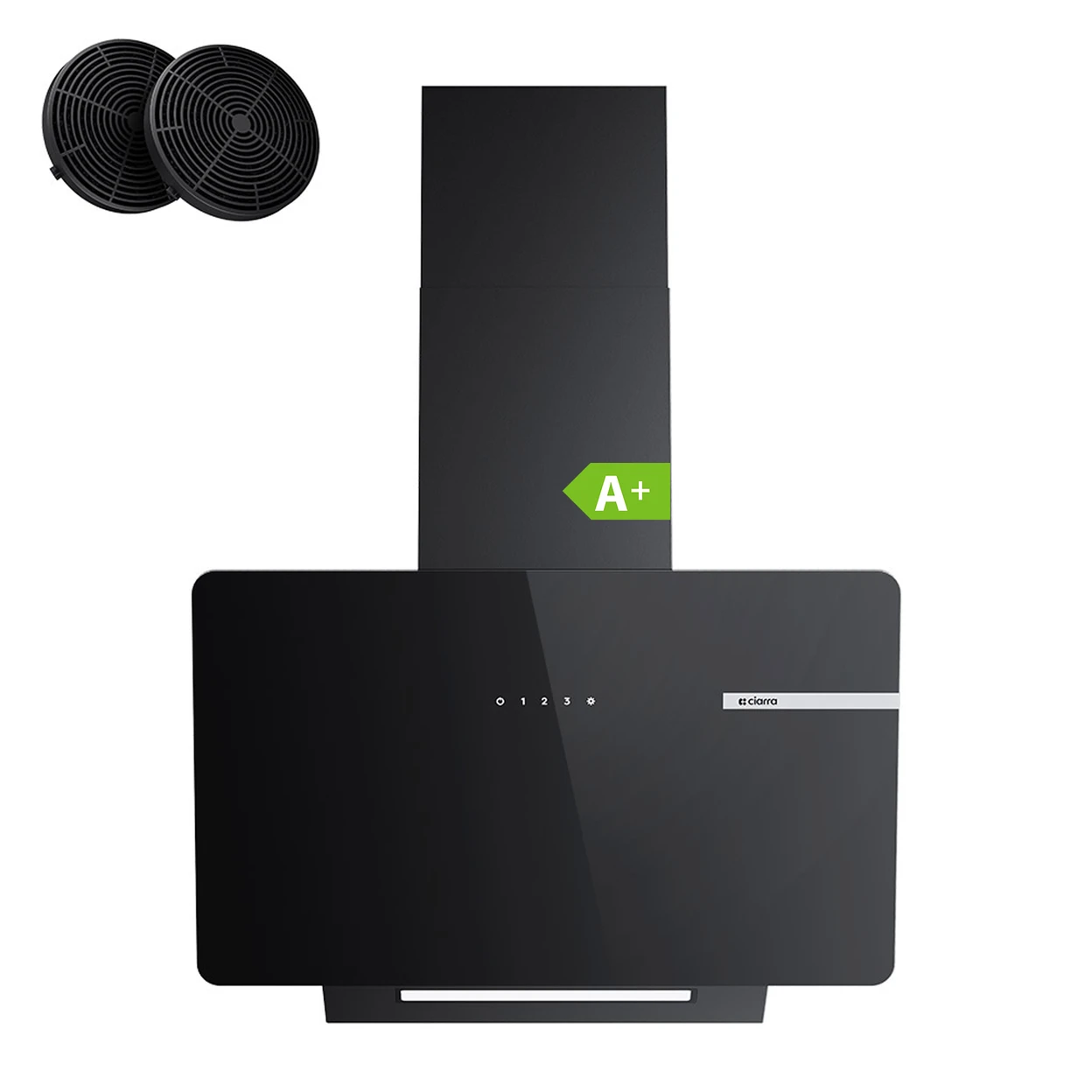 CIARRA Hotte aspirante murale 60 cm, panneau en verre noir, éclairage LED, système à double flux d'air
