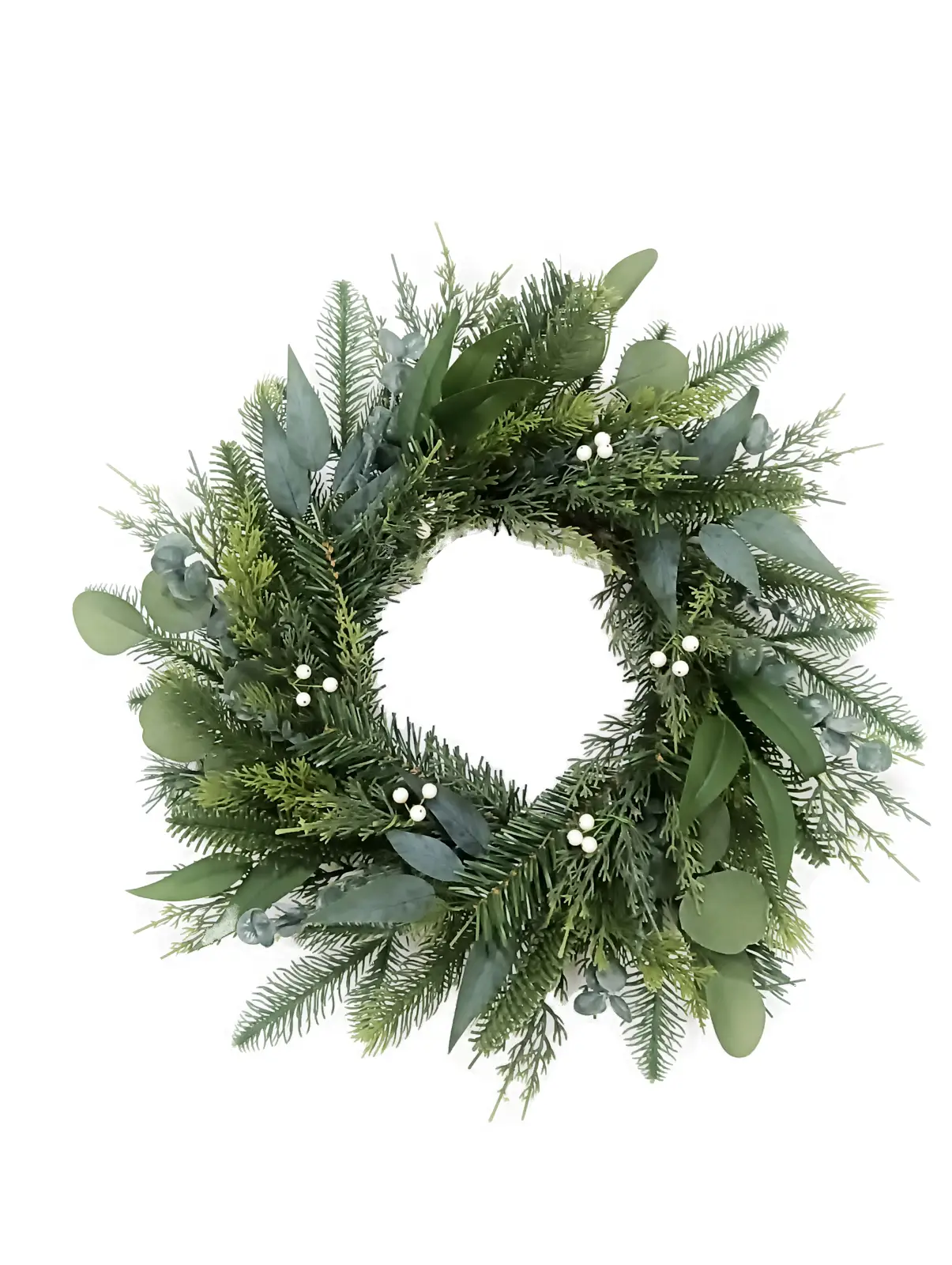 Daisy Darcy Couronne de feuillages avec mini cônes, baies blanches et pommes de pin - 50 cm