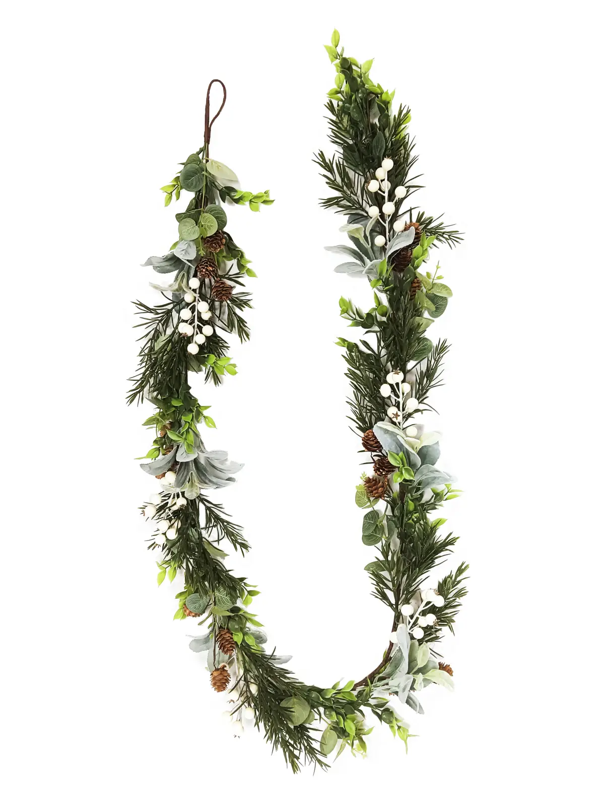 Daisy Darcy Guirlande de fleurs et baies avec pommes de pin naturelles - 183 cm