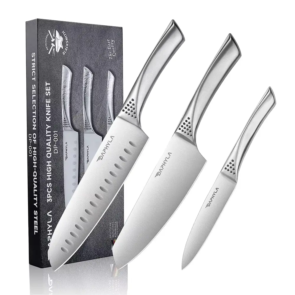 DAPHYLA Set de Couteaux de Cuisine Professionnels en Acier Inoxydable - Couteau de Chef, Santoku et Utilitaire, Lot de 3