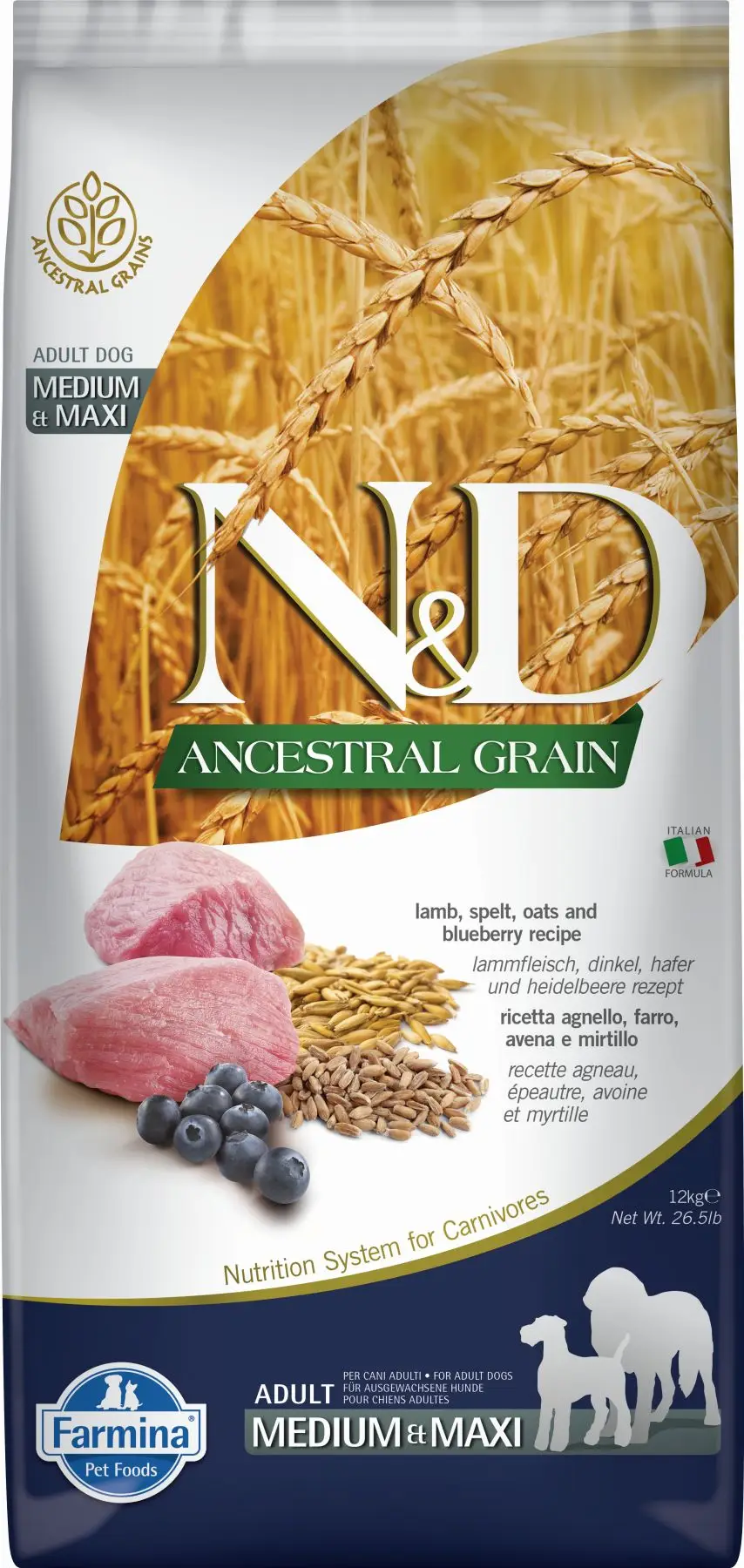 Farmina N&D Ancestral Grain Croquettes pour chien adulte medium/maxi à l'agneau - 12 kg