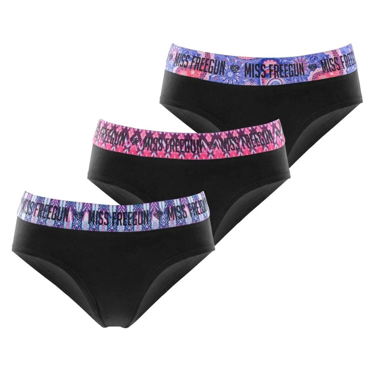 FREEGUN Stretch Ethnik Uni A Lot de 3 culottes en coton noir/rose/bleu/violet - Taille 12-14