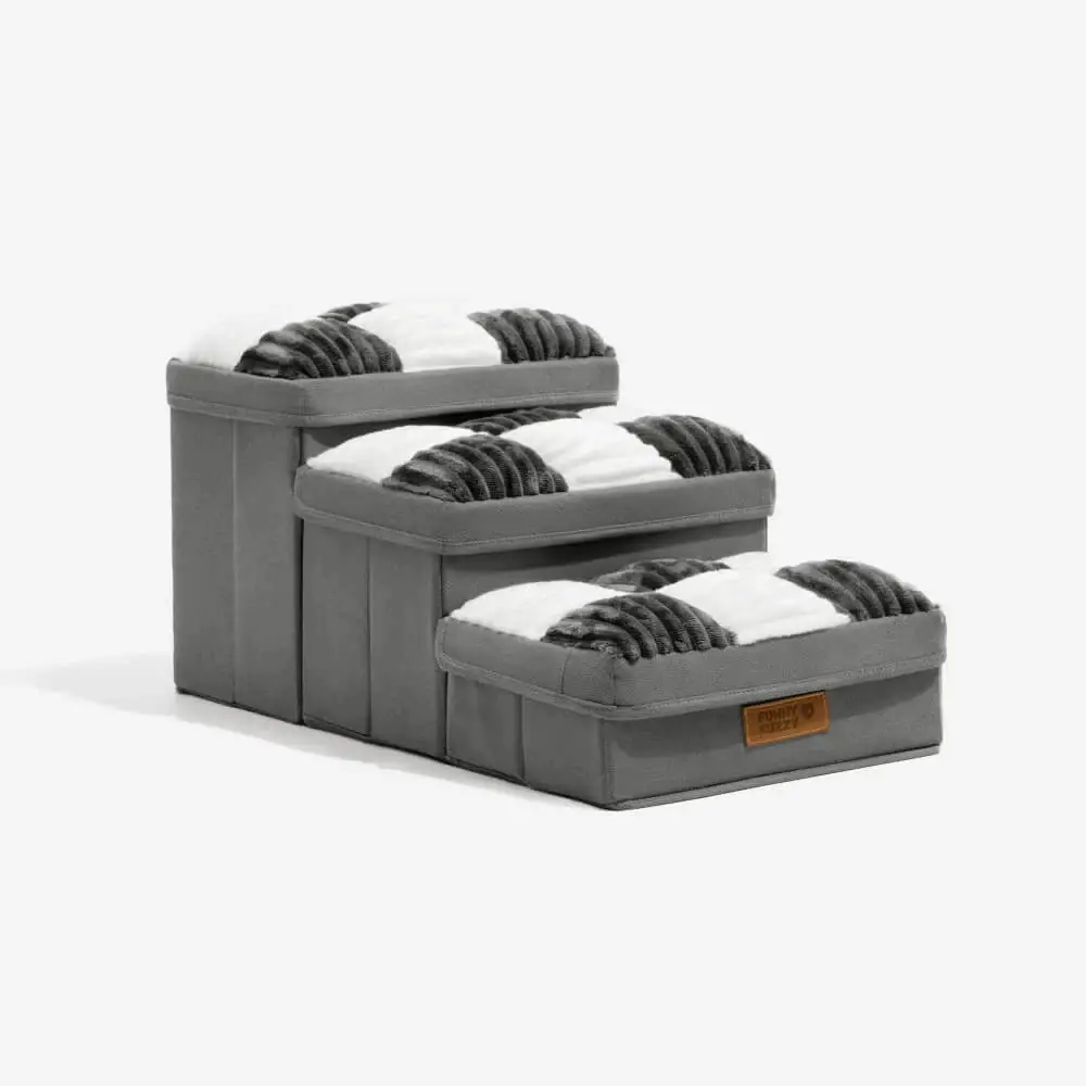 FUNNYFUZZY Marches pour animaux artisanales, motif échiquier, pour chiens et chats, avec rangement, 3 marches, gris