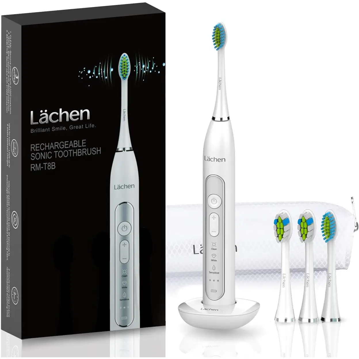 LÄCHEN RM-T8B Brosse à dents électrique sonique avec 4 têtes de brosse - Blanc