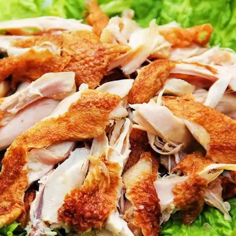 Ce poulet croustillant effiloché à la main est apprécié pour son authentique saveur de poulet cuit au sel et sa texture fondante. Les clients apprécient sa praticité et son goût, ce qui en fait un choix populaire pour les repas rapides. Bien que certains notent un assaisonnement assez simple, les commentaires généraux soulignent sa qualité et son excellent rapport qualité-prix.