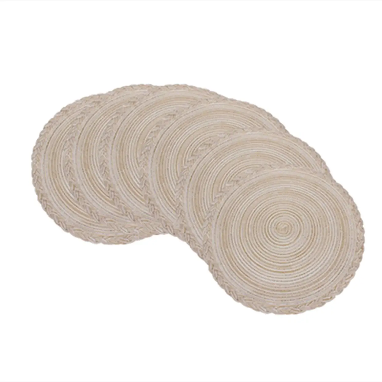 Lot de 6 Sets de Table Ronds Tressés 38cm avec Bordure Triple Brin - Coloris Café au Lait, Antidérapants en Polyester Style Nordique, Idéals pour la Maison, la Cuisine et la Table à Manger, Parfaits pour les Fêtes, Anniversaires, Mariages et Dîners