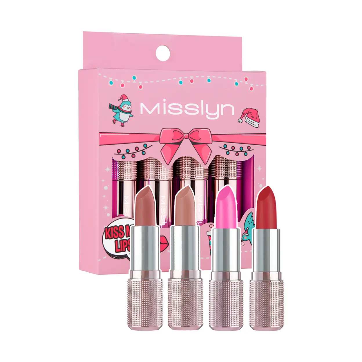 MISSLYN Lot de 4 rouges à lèvres Kiss My Lips 2 (95 Coffee Time + 98 Sweet Talk + 185 Rosy Blush + 192 Butterflies In My Stomach)