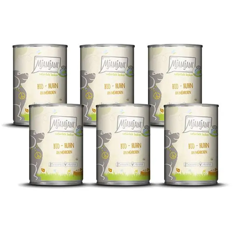 MjAMjAM - Aliment pour chien - Naturellement savoureux - Poulet biologique avec carottes - 400 g x 6