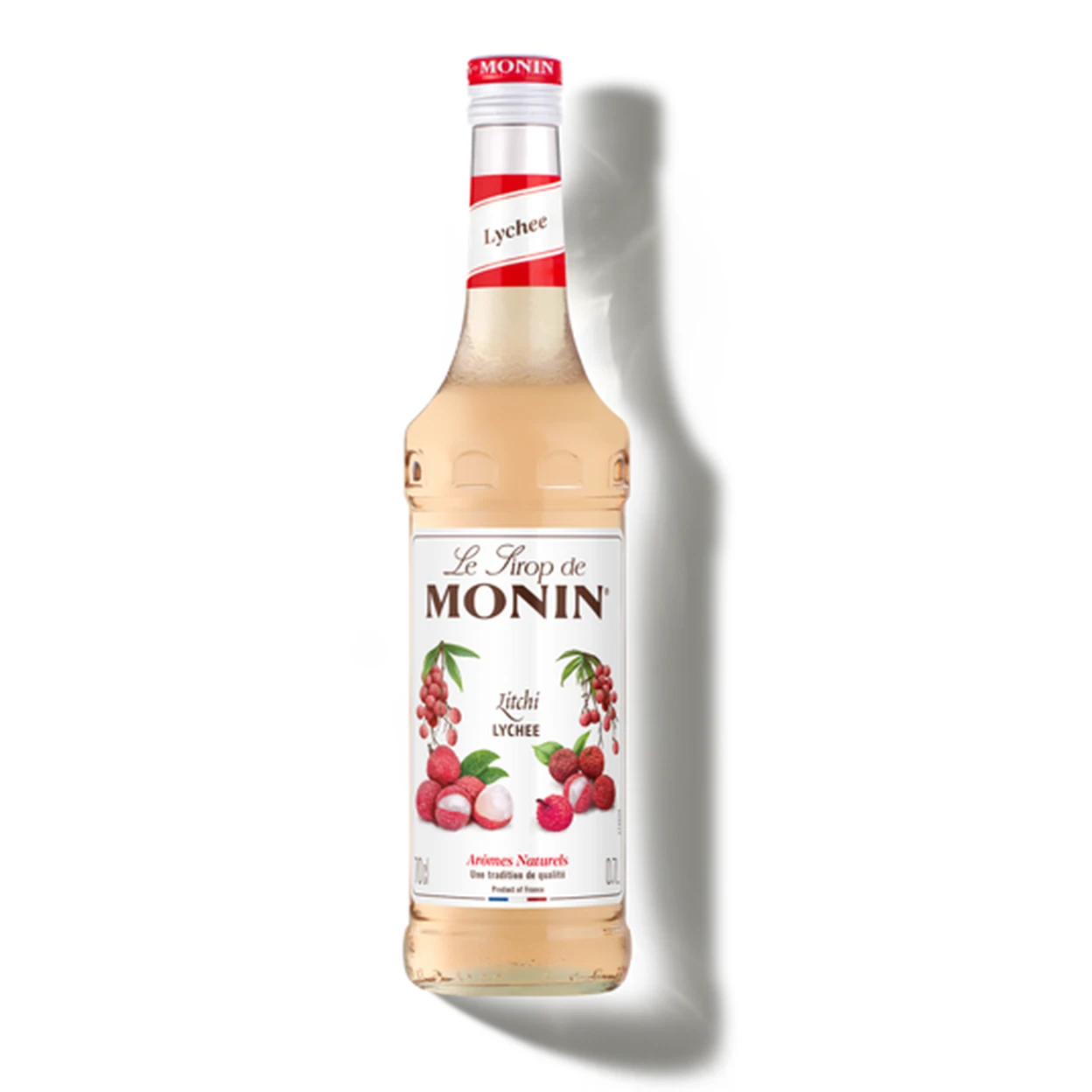 Sucre, eau, arôme naturel de litchi, jus concentré de citron, colorant : E163. Jus de fruits : 15%, dont 10% de jus de litchi.