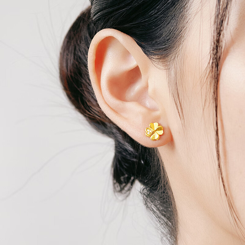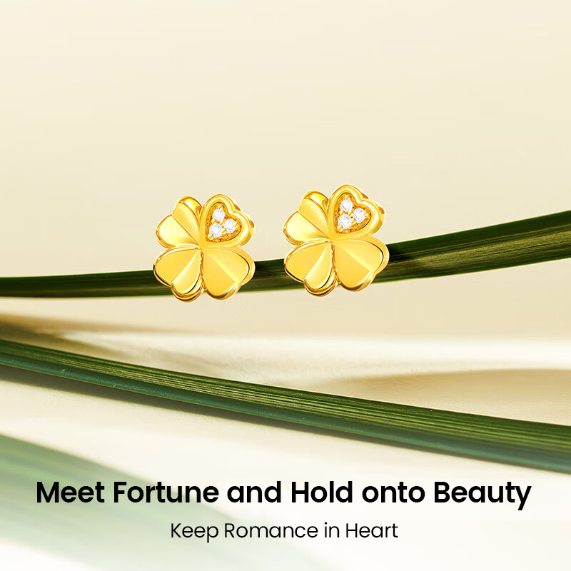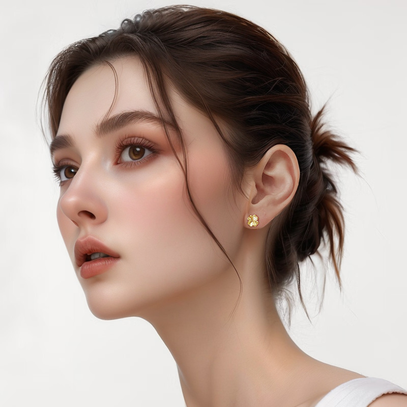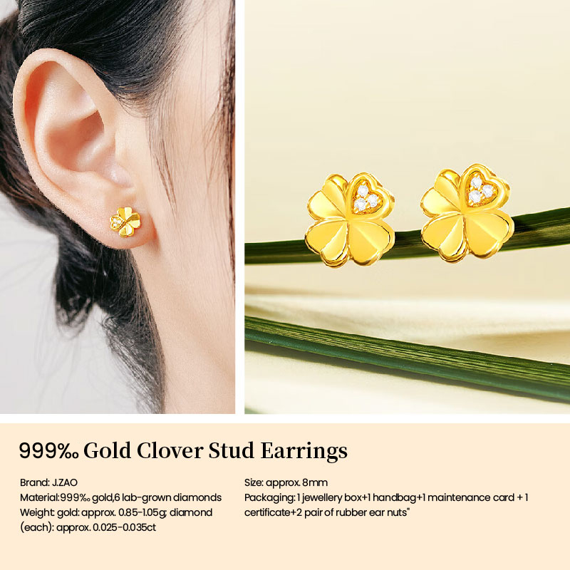 ochama Boucles d'oreilles Lucky Clover en or 999‰ avec diamant de culture biologique
