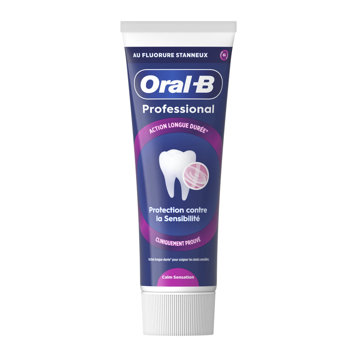 Oral-B Professional Protection Sensitive Calm Sensation est cliniquement prouvé pour offrir une protection durable des dents sensibles, avec une utilisation continue.La technologie antibactérienne unique d'Oral-B, dotée d'un complexe de fluorure d'étain et d'agents actifs apaisants, crée un bouclier protecteur pour protéger efficacement les dents sensibles, même entre deux brossages, tout en procurant une sensation de fraîcheur pendant et après le brossage.Convient aux dents sensibles. Dentifrice quotidien