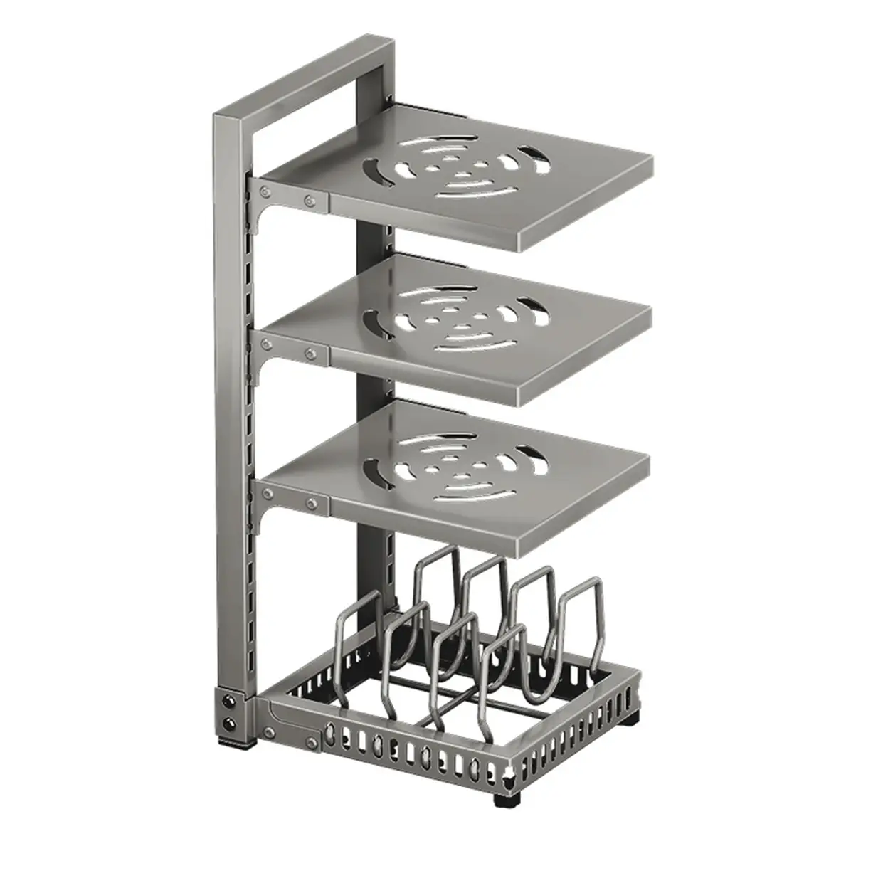 Organisateur d’Armoire en Acier Carbone Maxcook, Support Ajustable 4 Niveaux pour Couvercles et Poêles, Rangement Robuste en Acier pour Ustensiles de Cuisine et Tiroirs, Compatible avec Casseroles, Poêles et Couvercles 23x28x53cm MCZW9255