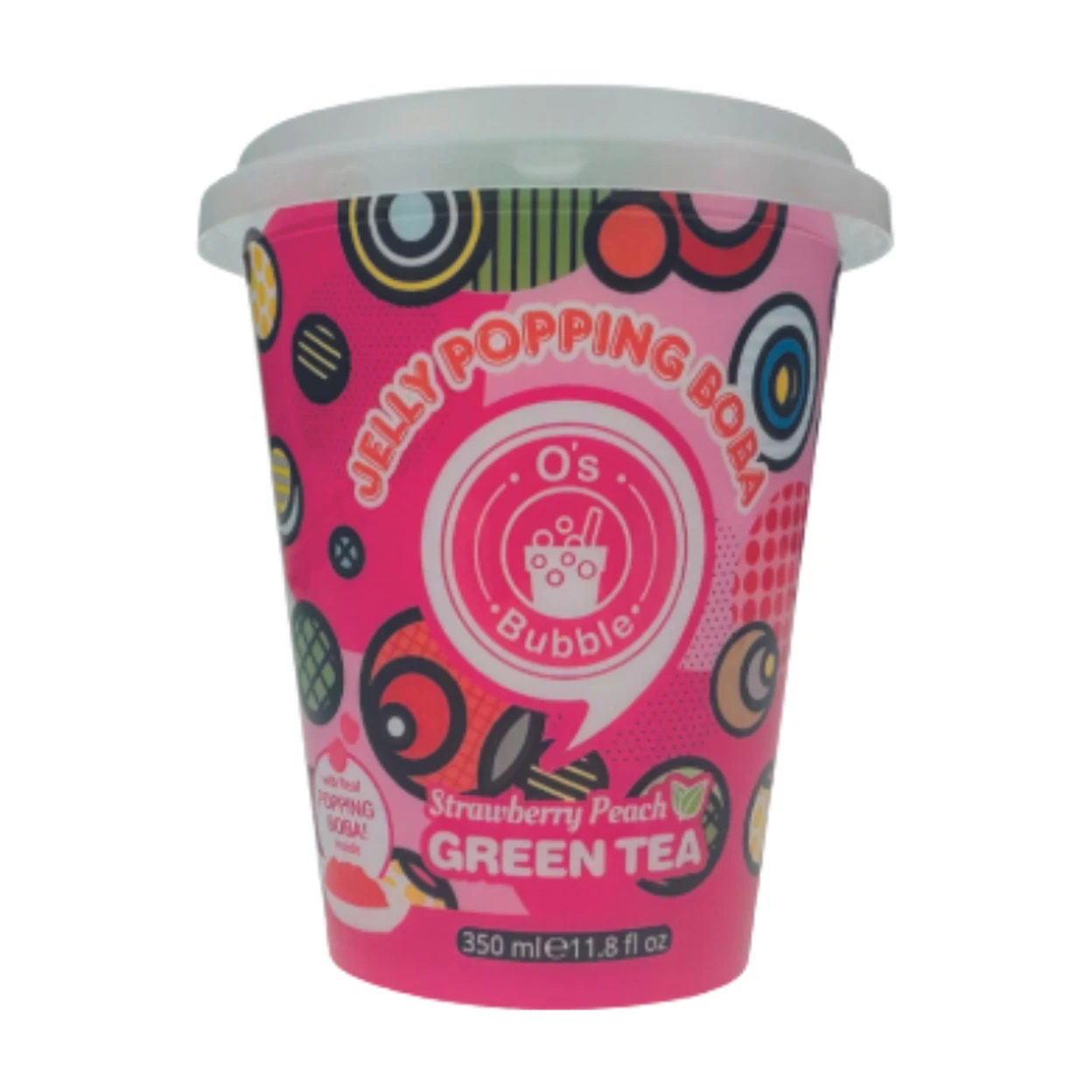 O'S BUBBLE Bubble Tea Popping Boba Cup Fraise Pêche 350Ml