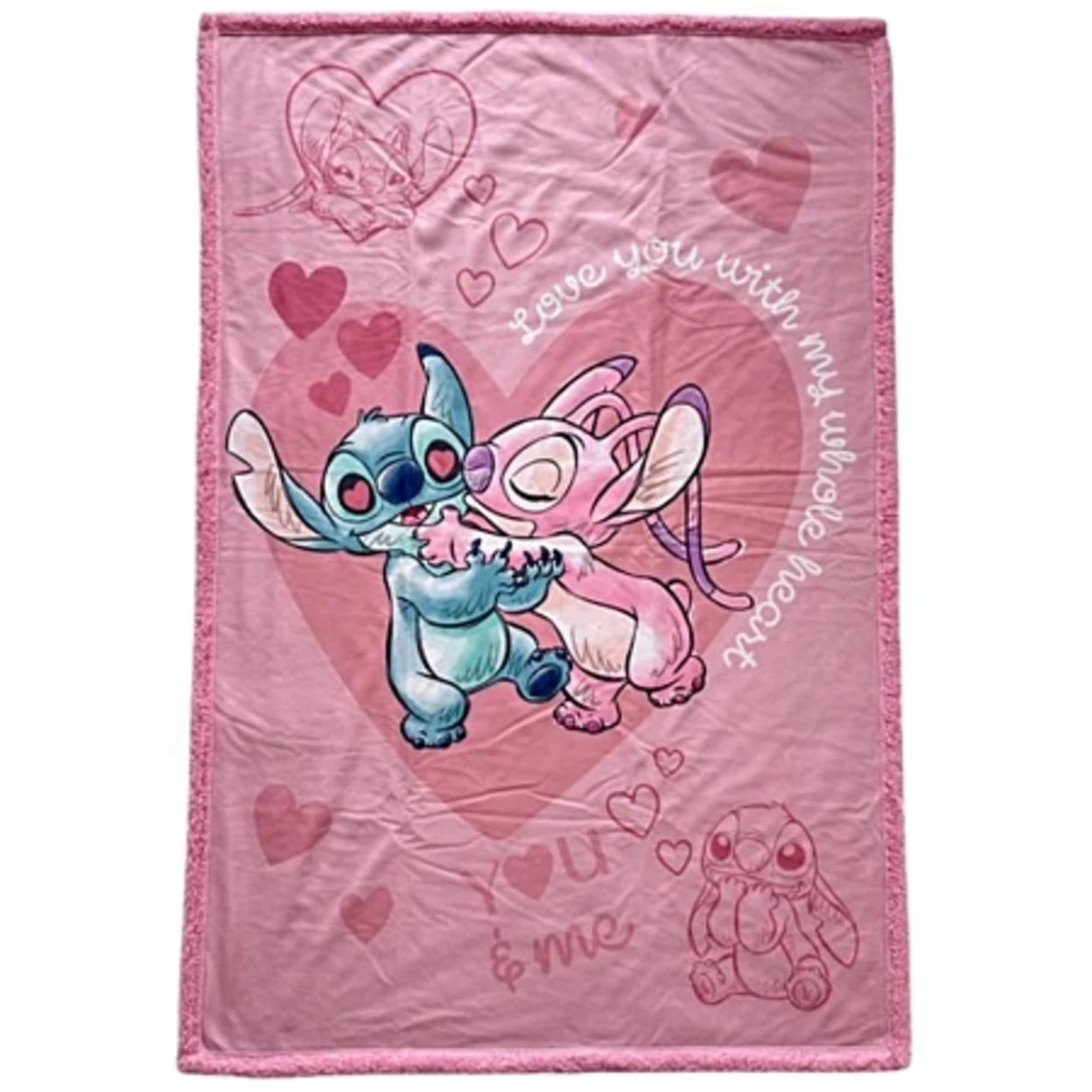 WT&T Couverture en Sherpa 100x150 cm - Stitch & Angel Bisou