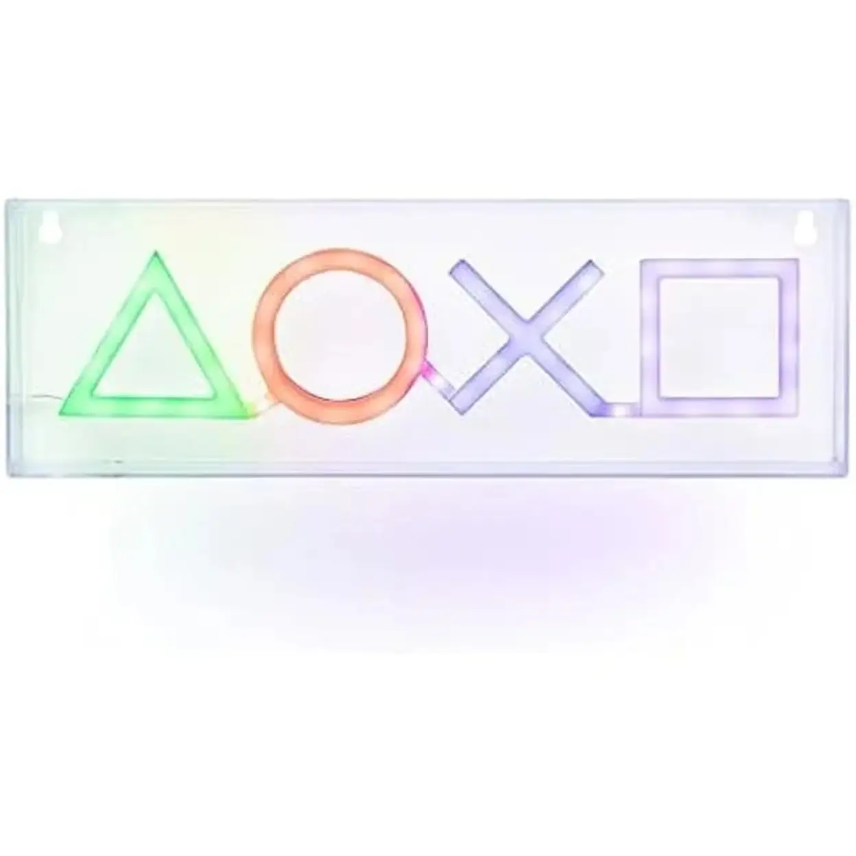 Fabriquée en plastique durable avec une finition lumineuse néon. L'ampoule arbore les icônes classiques de la manette PlayStation (triangle, cercle, croix, carré) éclairées par des LED multicolores. Alimentée via un câble USB (inclus).Conception compacte et légère, adaptée pour un placement sur bureau ou un montage mural.