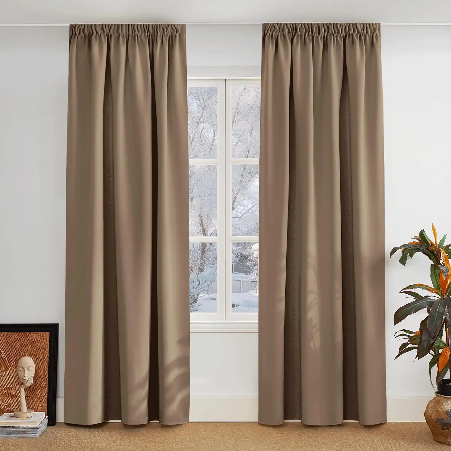 PONY DANCE Stores occultants avec fronceur à crayon, lot de 2, L 140 x H 220 cm (L 55 x H 87 pouces), Cappuccino
