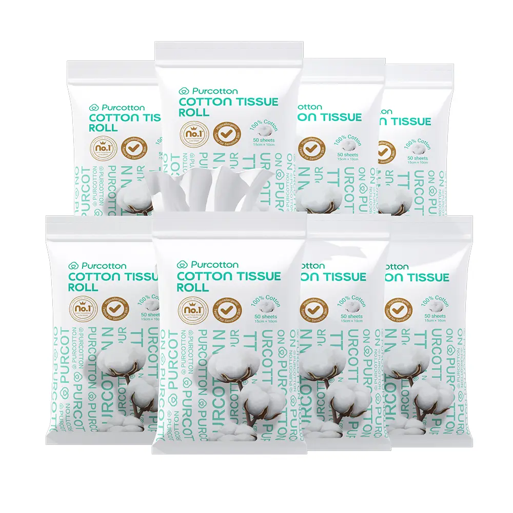 Purcotton Lot de 400 lingettes nettoyantes visage en coton pur - 50 feuilles x 8 sachets