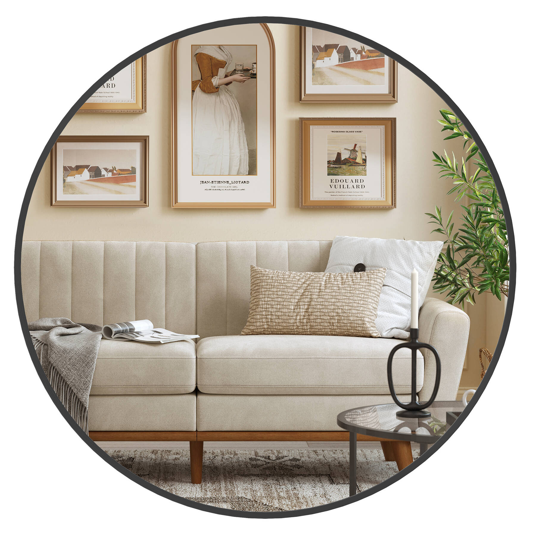 SONGMICS Miroir mural rond en métal, noir encre, moderne, facile à installer, 61 cm