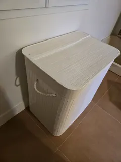 SONGMICS Panier de linge avec couvercle en bambou, 3 compartiments, pliable, 60 x 40 x 61,5 cm, 150 L, LCB091W01, Blanc, Offre Nouvel An, Idées cadeaux top
