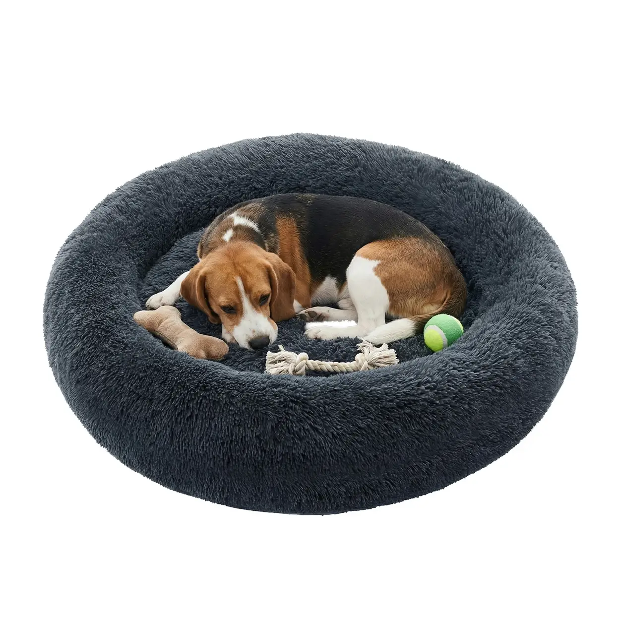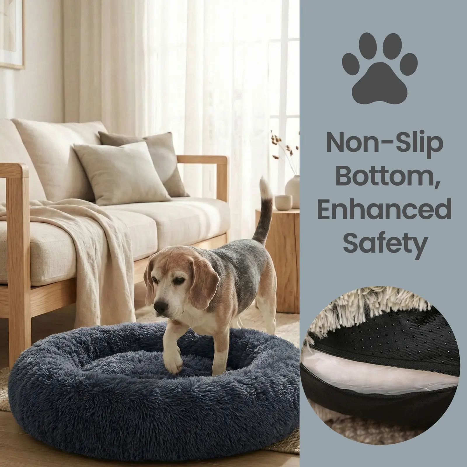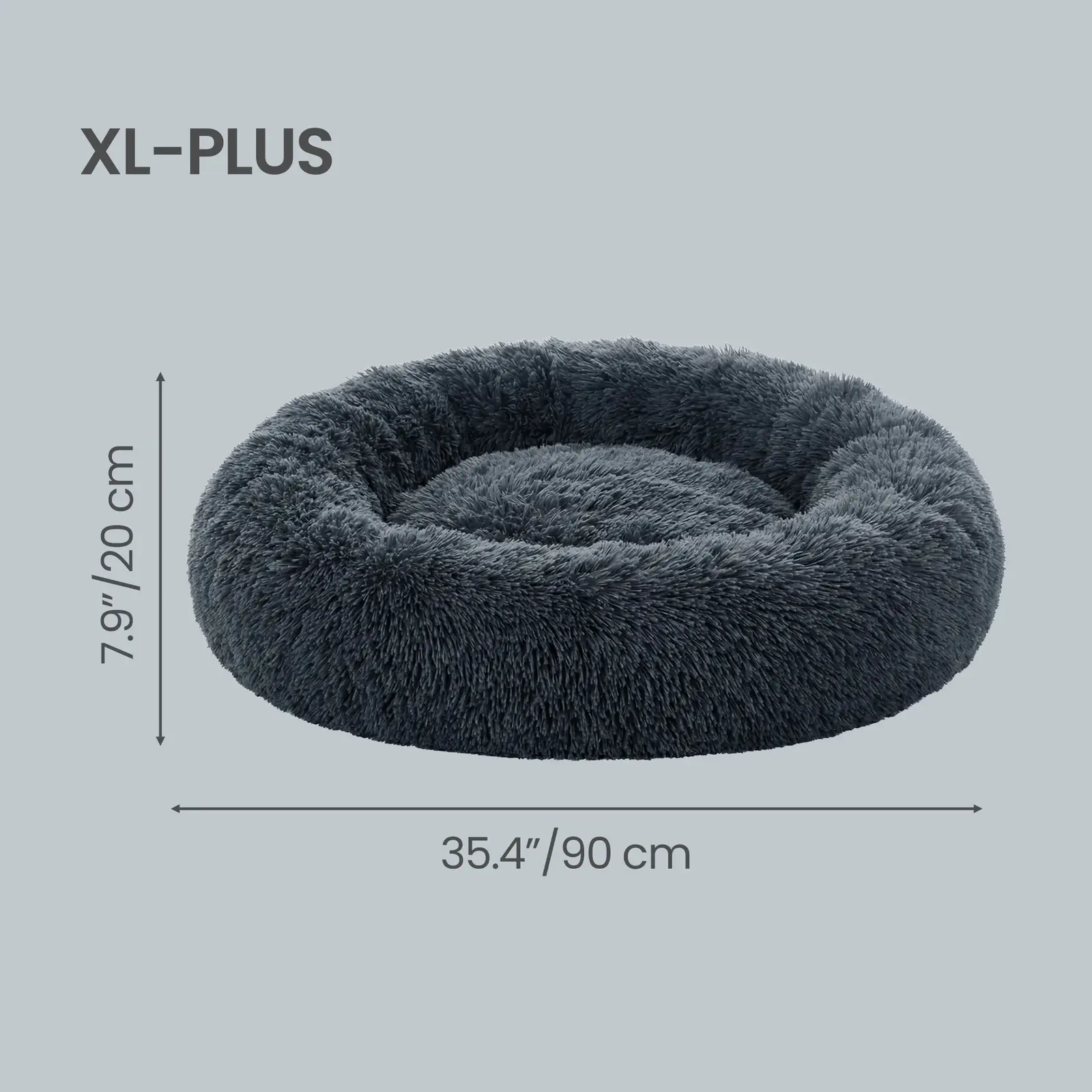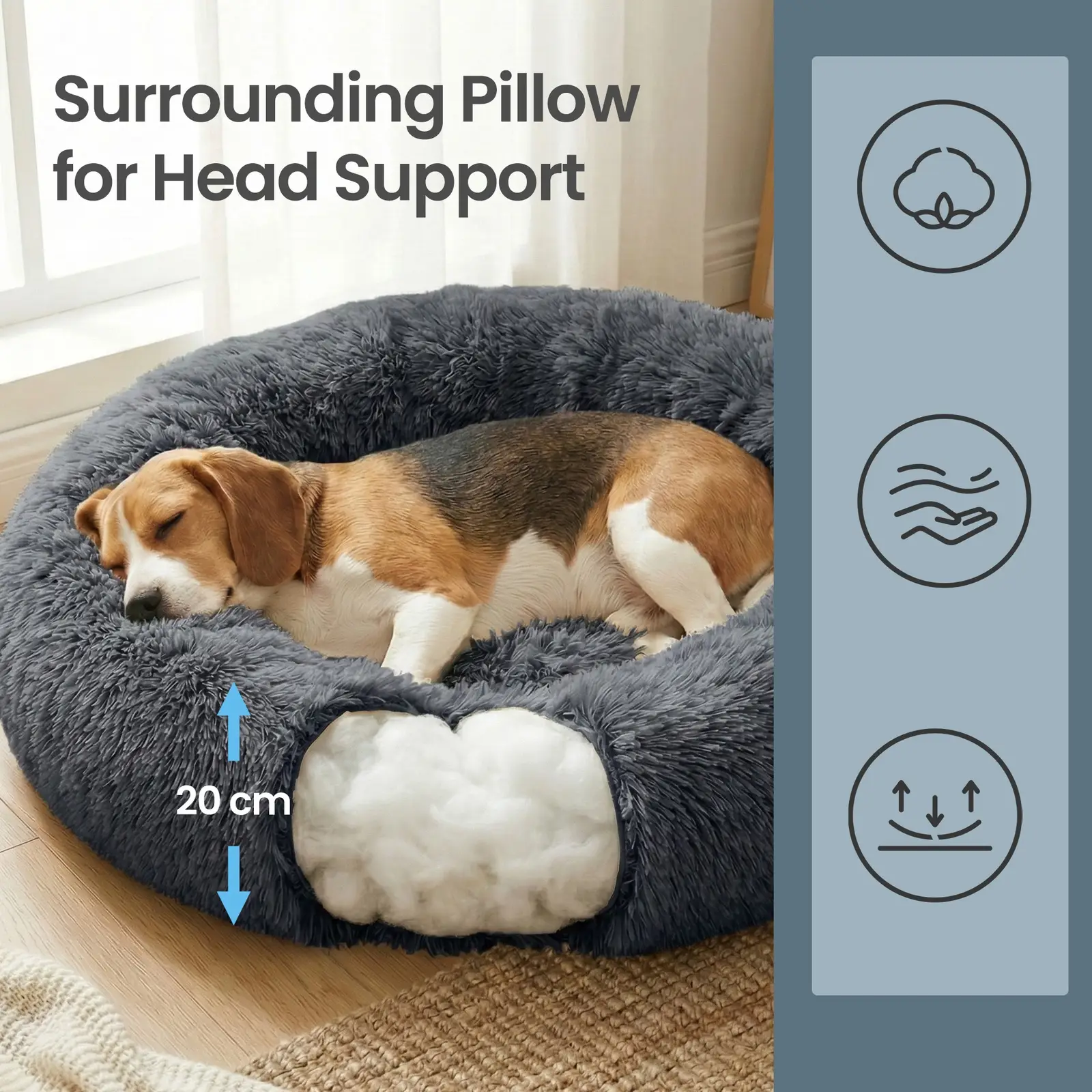 Design en forme de beignet de 90 cm de diamètre avec rebords surélevés et épais qui créent un espace de couchage sécurisé ressemblant à un nid, aidant à réduire l'anxiété et encourageant un sommeil réparateur.