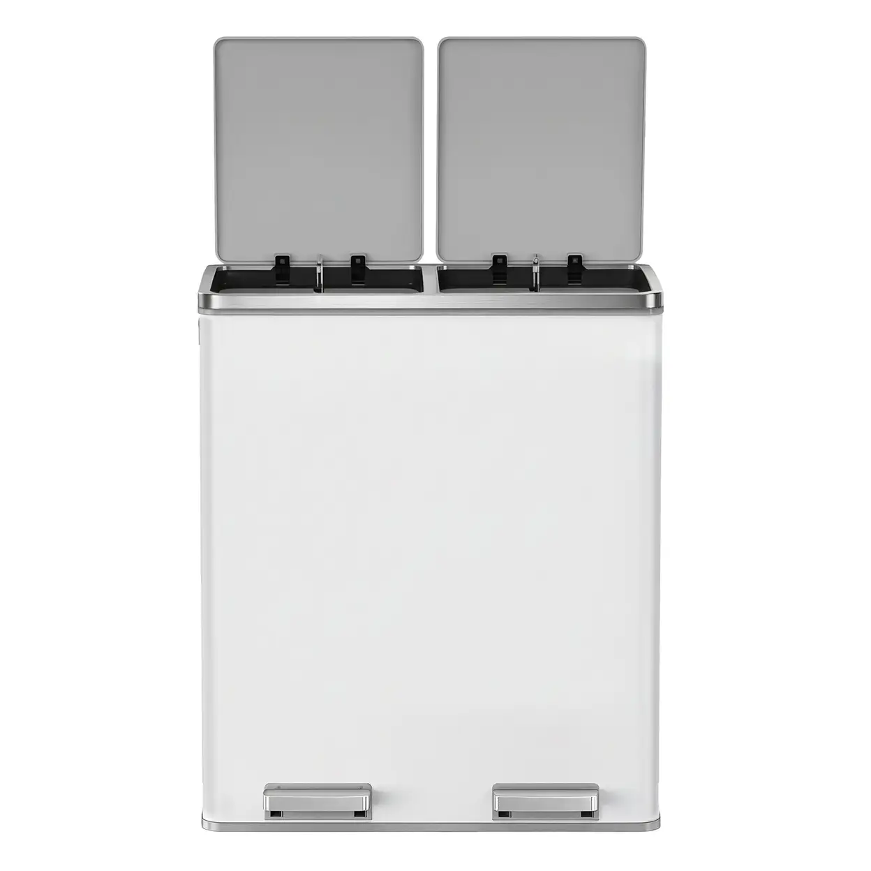 SONGMICSHOME Poubelle de Tri 60 L avec 2 Compartiments, Seaux Intérieurs Amovibles, Pédales, Cuisine, Sacs Inclus, Blanc et Gris