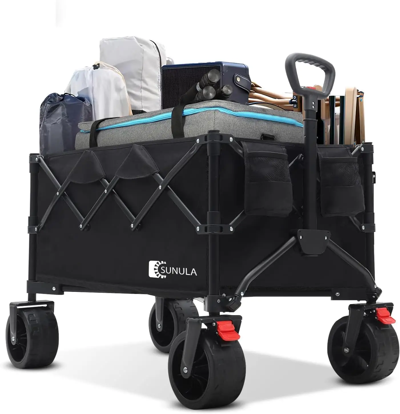 SUNULA Chariot de transport pliable - Charge maximale 120 kg - Chariot à main pliable avec poignée en un clic et pliable sur les 4 côtés - Tous les terrains avec freins - 150 l - Noir
