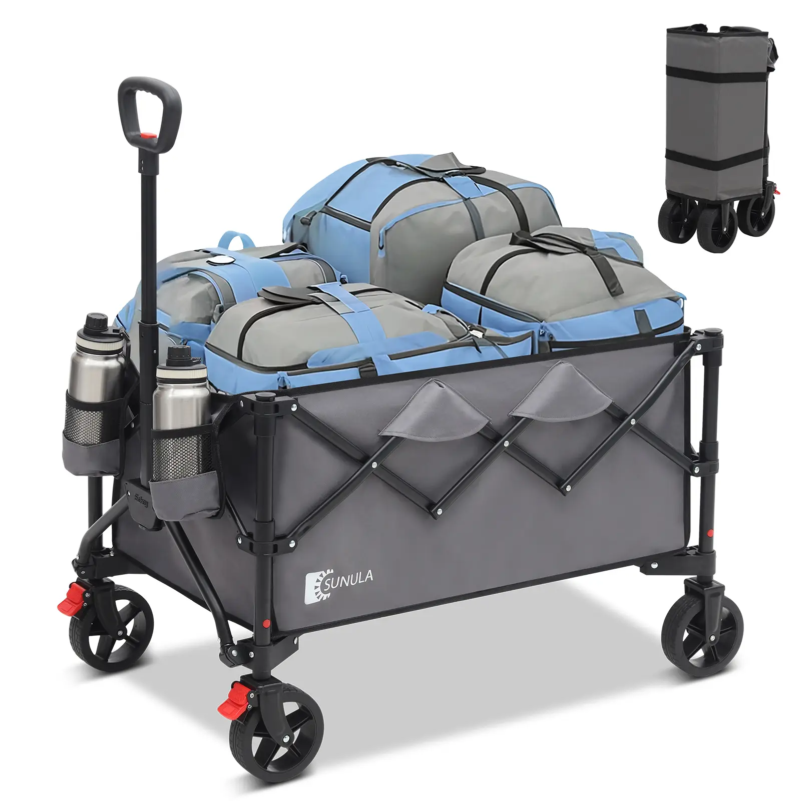 SUNULA Chariot Pliable de Plage 120KG Transport Repliable 4 Faces, poignée à déclic & Roues Tout-Terrain Freins 150L, GRIS