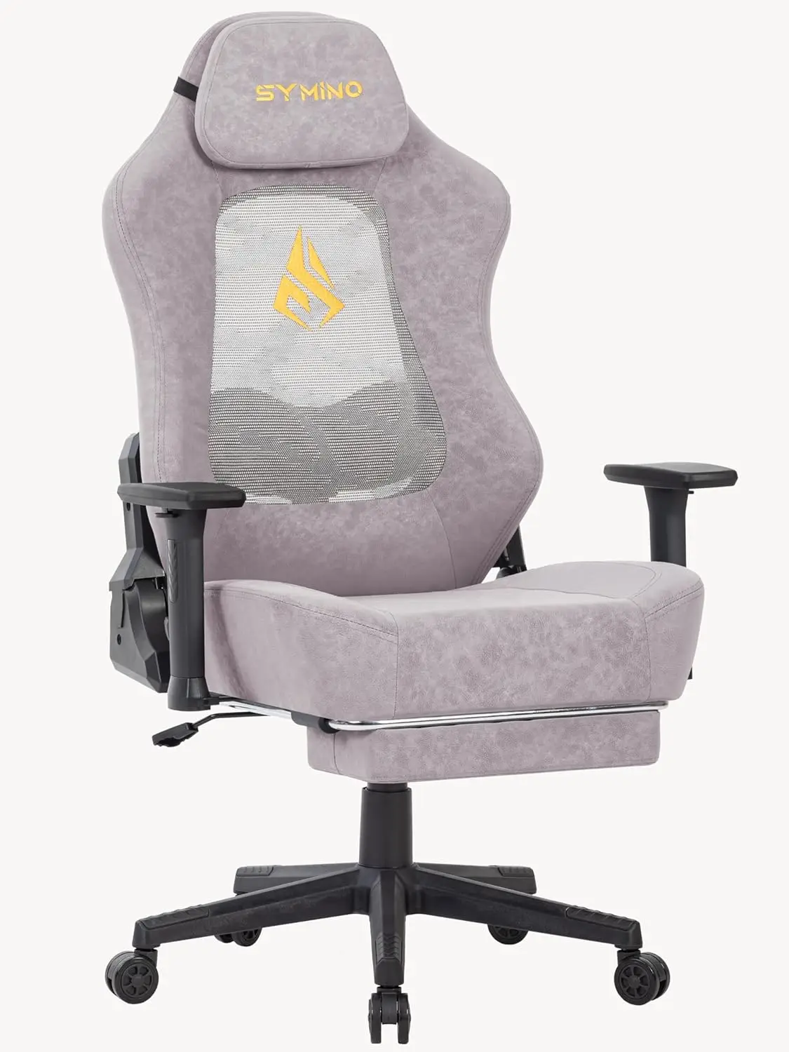 SYMINO Chaise de jeu avec dossier ajouré respirant, chaise PC ergonomique avec fonction d'inclinaison de 12°, fauteuil de jeu avec soutien lombaire 3D, cuir PU vintage 90-155°, rose.