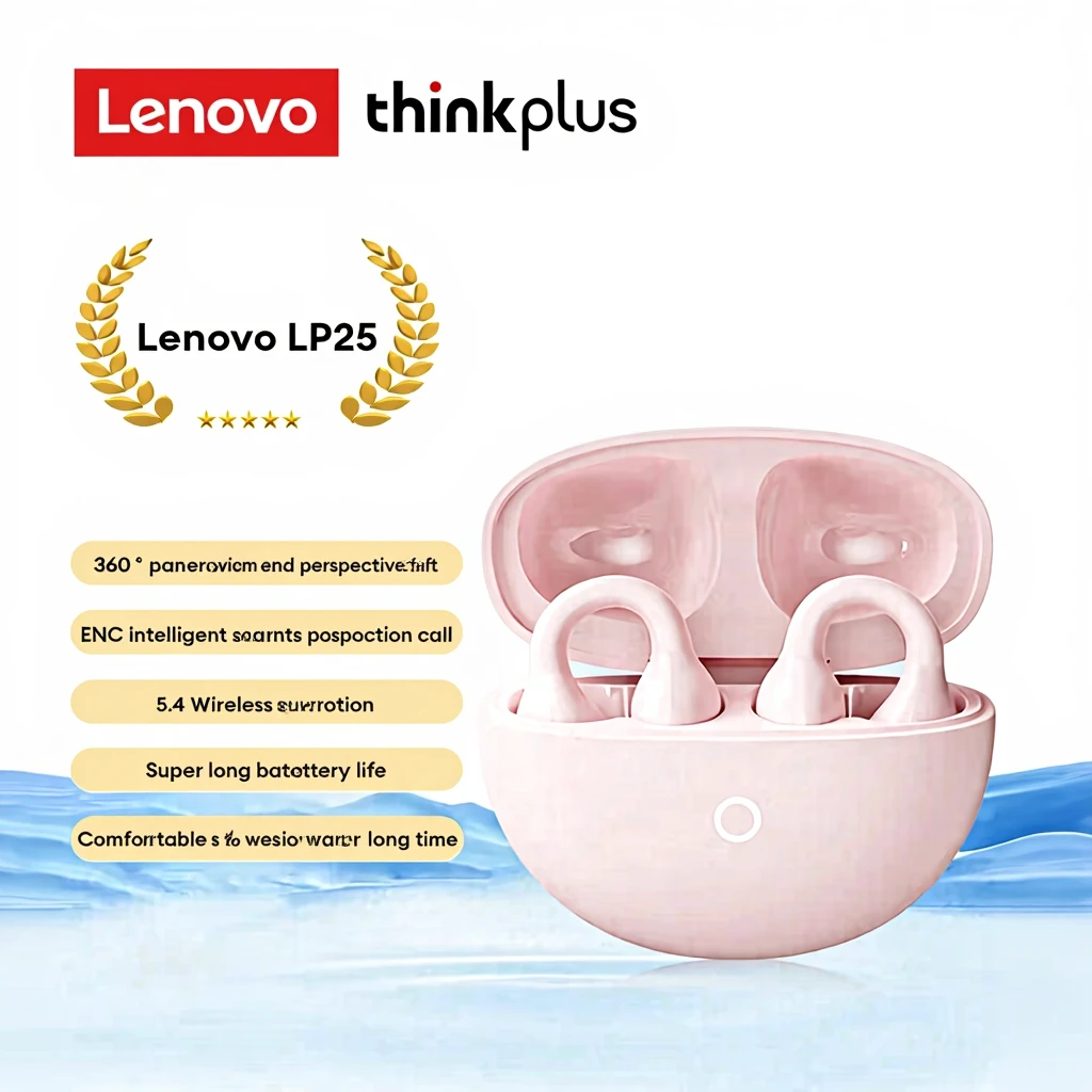 Thinkplus Lenovo LP25 Ecouteurs Bluetooth à clip, batterie longue autonomie, compatible Apple et Android - Rose