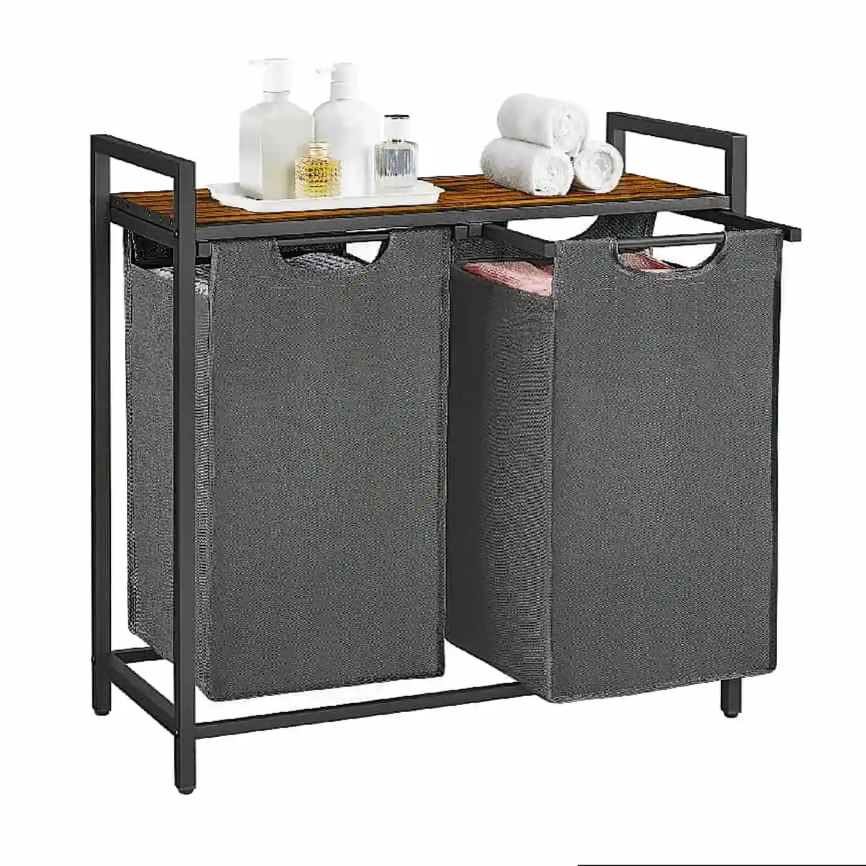 VASAGLE Panier à linge à double compartiments en tissu Oxford extensible amovible avec cadre en métal