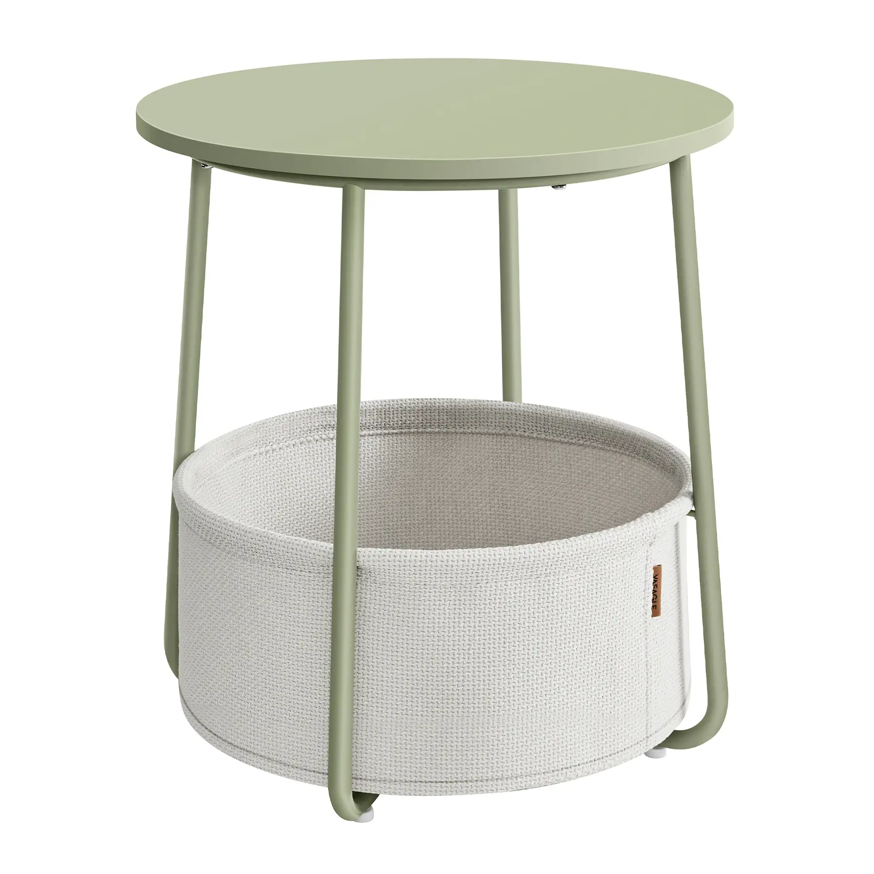 VASAGLE Table d’appoint ronde avec panier en tissu, design moderne, vert et blanc