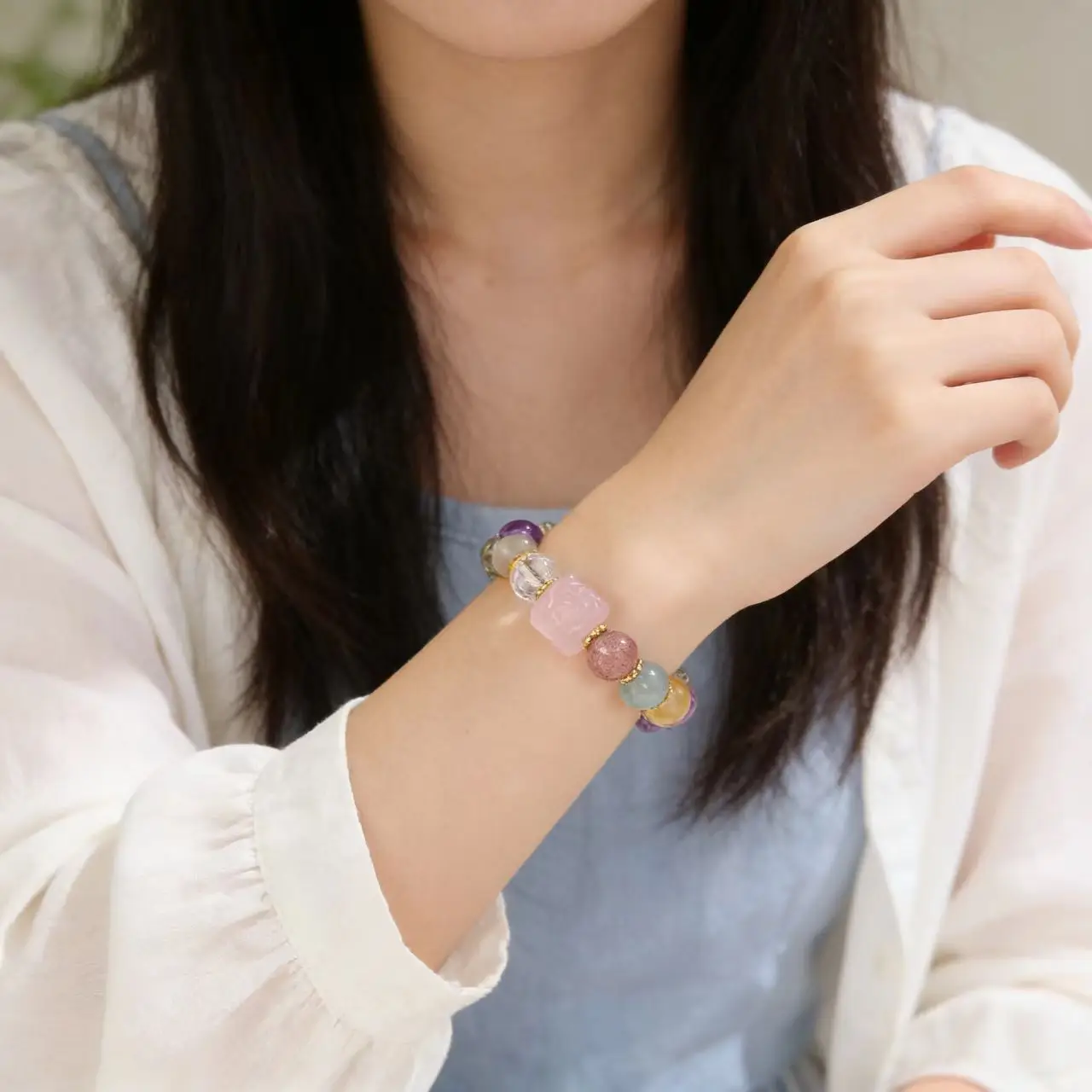 VoxorAIL8 [Liebe und Zärtlichkeit] Natürliches Rosenquarz-Armband, ein beliebtes, originelles DIY-Armband in Handarbeit mit einem hochwertigen, frischen, süßen und leichten Luxus-Feeling.