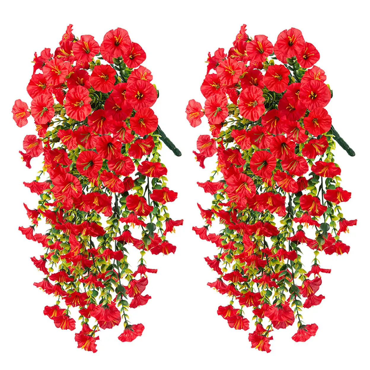 Yuejia Lot de 4 bouquets suspendus de fleurs artificielles en soie liseron rouge - 75 cm image 0
