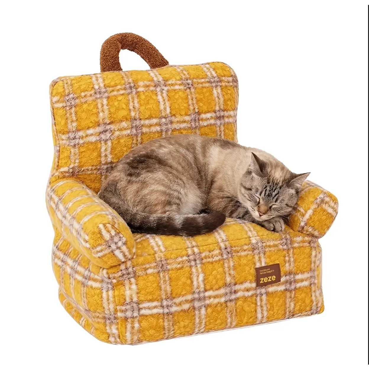 ZEZE Canapé pour animaux à carreaux rétro, doux et confortable, pour chiens et chats d’intérieur, 40 x 40 x 47 cm