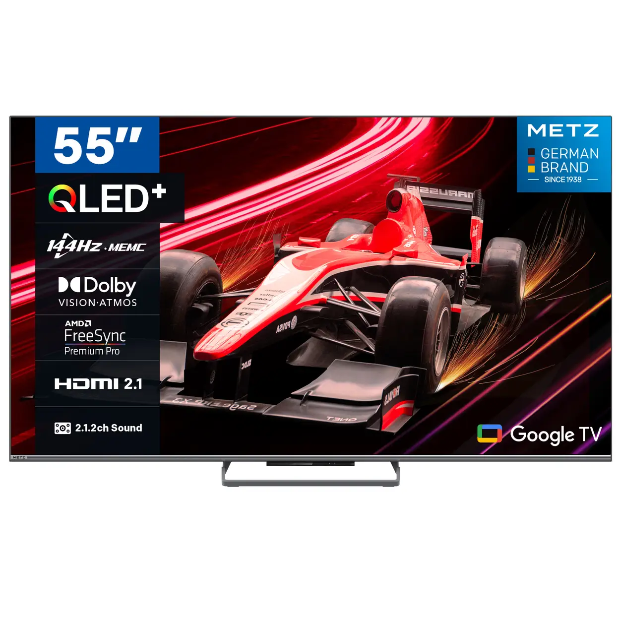 METZ 55MQE8000Z TV 55 pouces (140 cm) QLED Google TV, 144 Hz, 4K UHD HDR10+, Dolby Vision & Atmos, Système audio 2.1.2 avec caisson de basses intégré, HDMI 2.1, FreeSync Premium, MEMC, protection des yeux (faible lumière bleue, sans scintillement) (Energy Efficiency F)