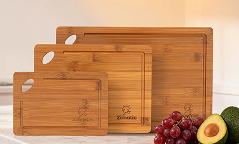 Zimatic Planche à Découper en Bambou Haut de Gamme - Lot de 3 Planches Épaisses pour la Cuisine, le Petit-Déjeuner, le Pain et le Service